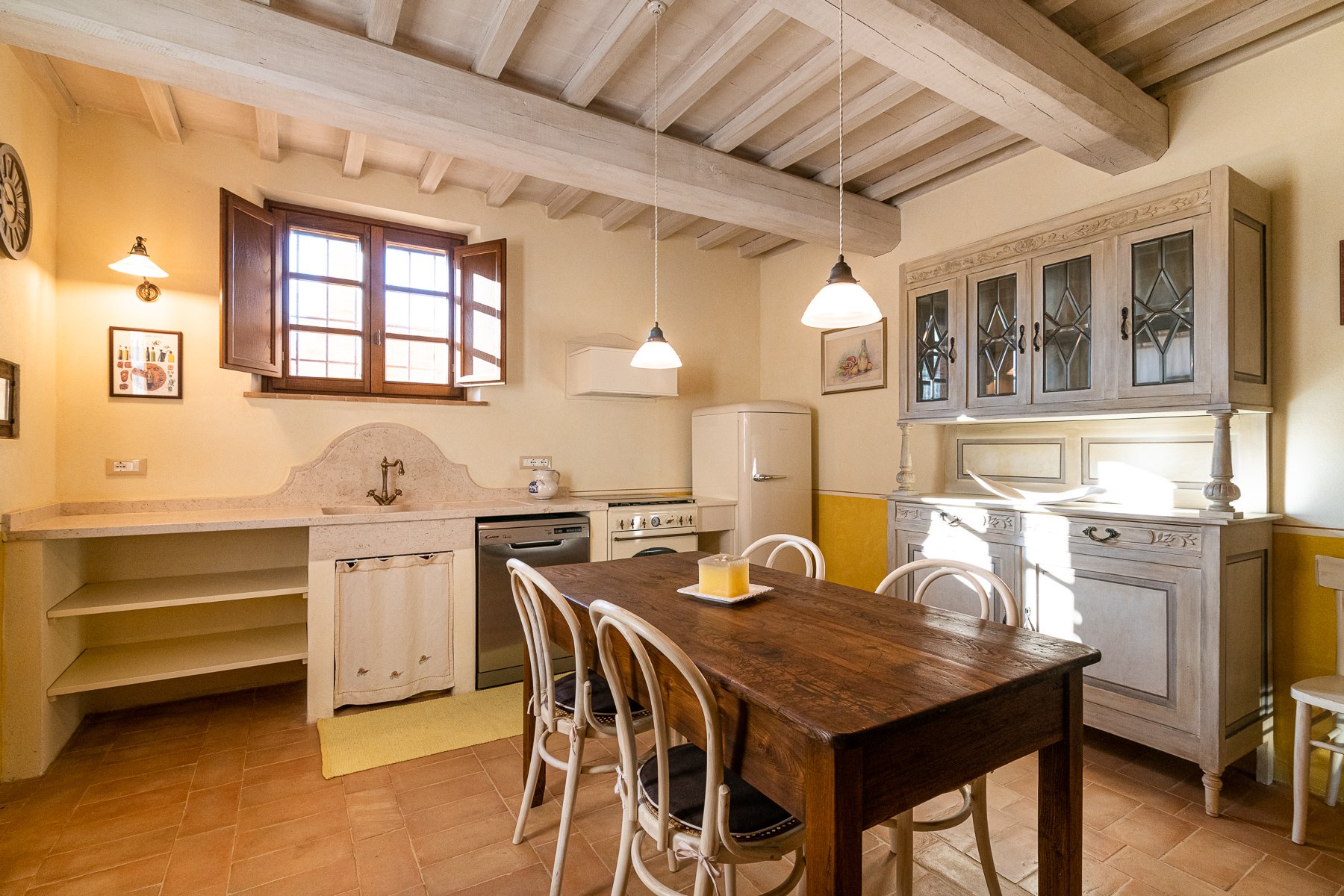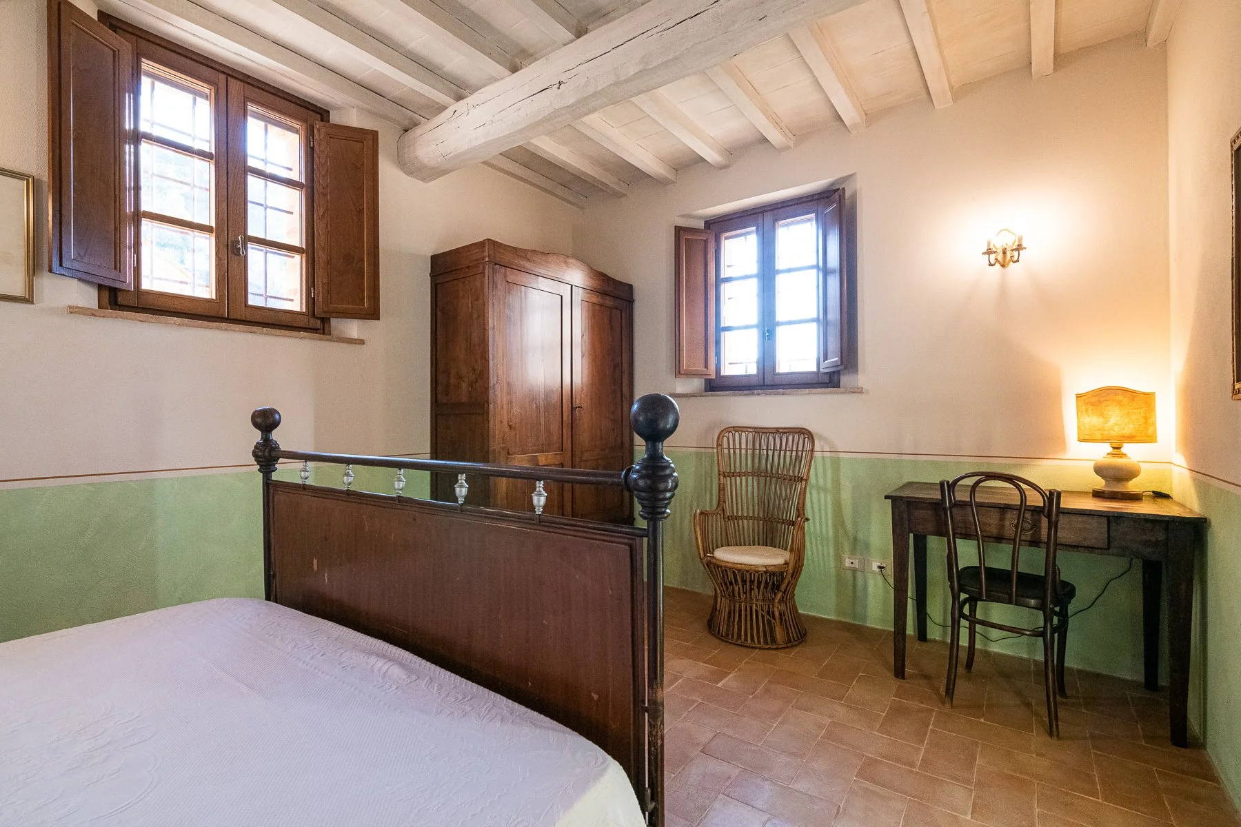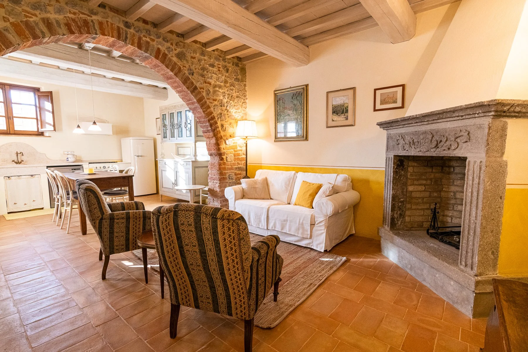 Today Podere San Selvatico offers all the comforts of a modern luxury home, starting from a superb private swimming pool with a panoramic view over Valdichiana. Guests will have access to a renovated two-bedroom apartment with a fully equipped kitchen comprised with fridge, oven, stoves, washing machine, and fireplace. Each room has been designed to perfection, including the two private bathrooms with large showers. Giovanna (your host) is particularly proud of the many rustic details of the interiors that give a unique soul to Podere San Selvatico. The lounge is magnificent in its antique style, perfect for relaxing in the hottest hours of the day, studying or working.